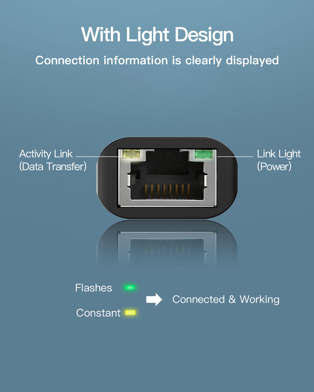 [With light design] With LED light that blinks yellow and lights green, connection information is clearly displayed. It is perfectly connected to the port, and signal transfer is guaranteed.