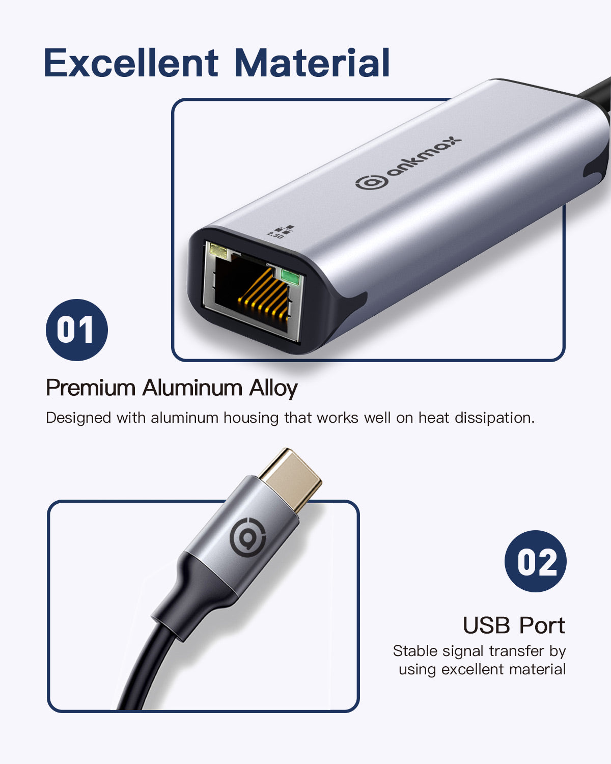 Ankmax USB C to Ethernet Adapter 2.5Gb, Ethernet Adapter UC312G2 for Laptop, Aluminum with Thermal Design, Type C (Thunderbolt 5/4/3 Compatible) to RJ45 Network LAN Internet, Compatible for MacBook Air/Pro, XPS