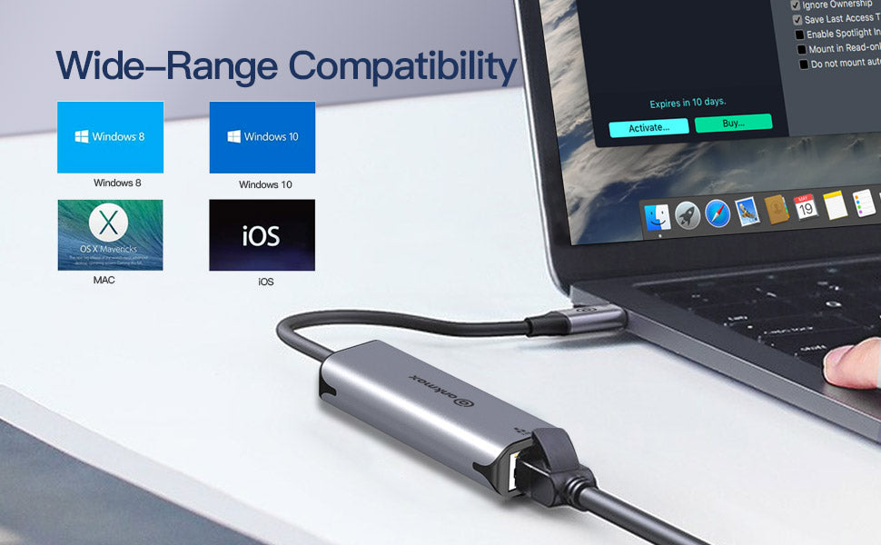 [Excellent compatibility] Supported systems, can be used immediately by inserting it without a driver: Win8/10, Mac OsX 10.6/10.6 or later. You can easily achieve high-speed network connection. In addition, our wired lan adapter can support crossover detection, automatic correction, Wake-on-LAN (WOL)/Full-Duplex (FDX)/Half-Duplex (HDX) Ethernet, and back pressure routing.